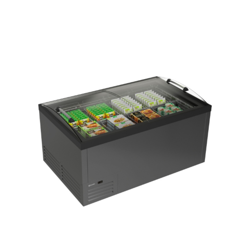 Μέγιστη ορατότητα των προϊόντων που εμφανίζονται χάρη στα κυρτά συρόμενα γυάλινα καπάκια χωρίς πλαστικά προφίλ