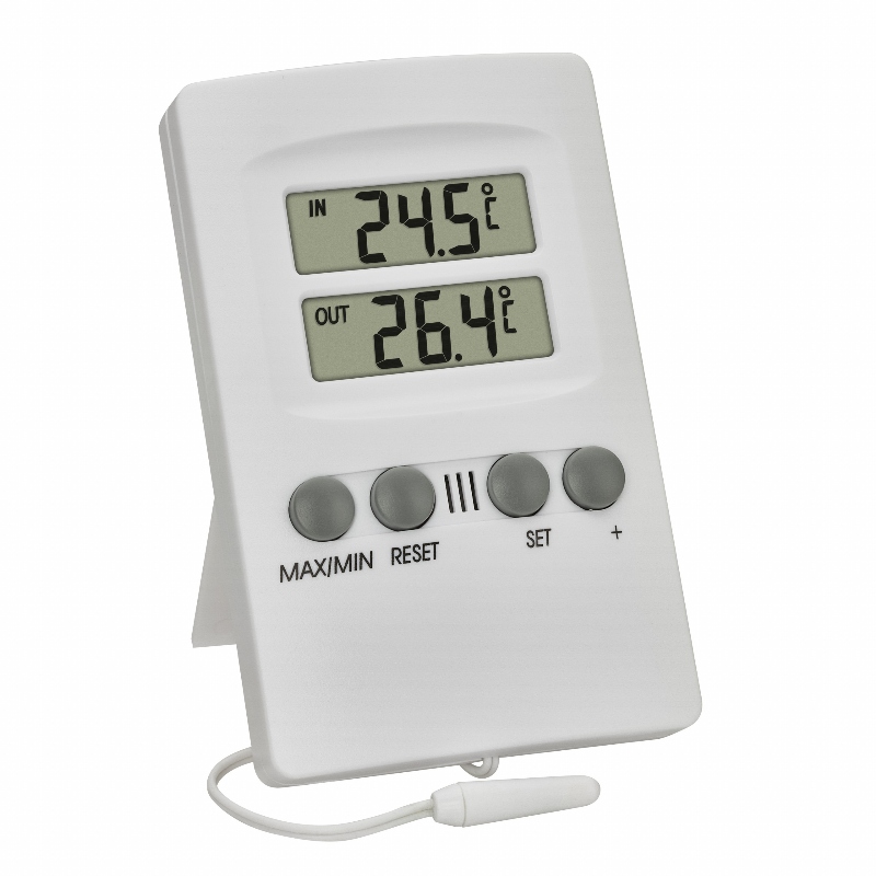 Αυτό το λειτουργικό θερμόμετρο είναι ιδανικό για ταυτόχρονη μέτρηση των θερμοκρασιών εσωτερικού και εξωτερικού χώρου. Ο έλεγχος της θερμοκρασίας του δωματίου αποτελεί σημαντικό παράγοντα για ένα άνετο και υγιεινό περιβάλλον διαβίωσης και βοηθά στην εξοικονόμηση ενέργειας. Ακόμη και μια μείωση της θερμοκρασίας κατά έναν βαθμό μπορεί να φέρει μείωση έως και 6% στο κόστος θέρμανσης. Τοποθετημένος στο παράθυρο, το καλώδιο αισθητήρα απλώς οδηγείται έξω για τη μέτρηση της εξωτερικής θερμοκρασίας. Η μνήμη μέγιστων-ελάχιστων τιμών με χειροκίνητη επαναφορά επιτρέπει την παρακολούθηση των κορυφαίων τιμών για μια επιλεγμένη χρονική περίοδο. Μπορεί να ρυθμιστεί συναγερμός θερμοκρασίας να εκπέμπει σήμα συναγερμού κατά τον πάγο ή σε εξαιρετικά υψηλές θερμοκρασίες. Οι δυνατότητες εφαρμογής των θερμομέτρων με καλώδια αισθητήρων είναι πολλές και δεν περιορίζονται μόνο στη μέτρηση της εξωτερικής θερμοκρασίας. Λόγω της μεγάλης κλίμακας μέτρησης, ο αδιάβροχος αισθητήρας μέτρησης μπορεί επίσης να χρησιμοποιηθεί για τον έλεγχο της θερμοκρασίας του ψυγείου και της κατάψυξης ή για τη μέτρηση της θερμοκρασίας του νερού στο ενυδρείο.